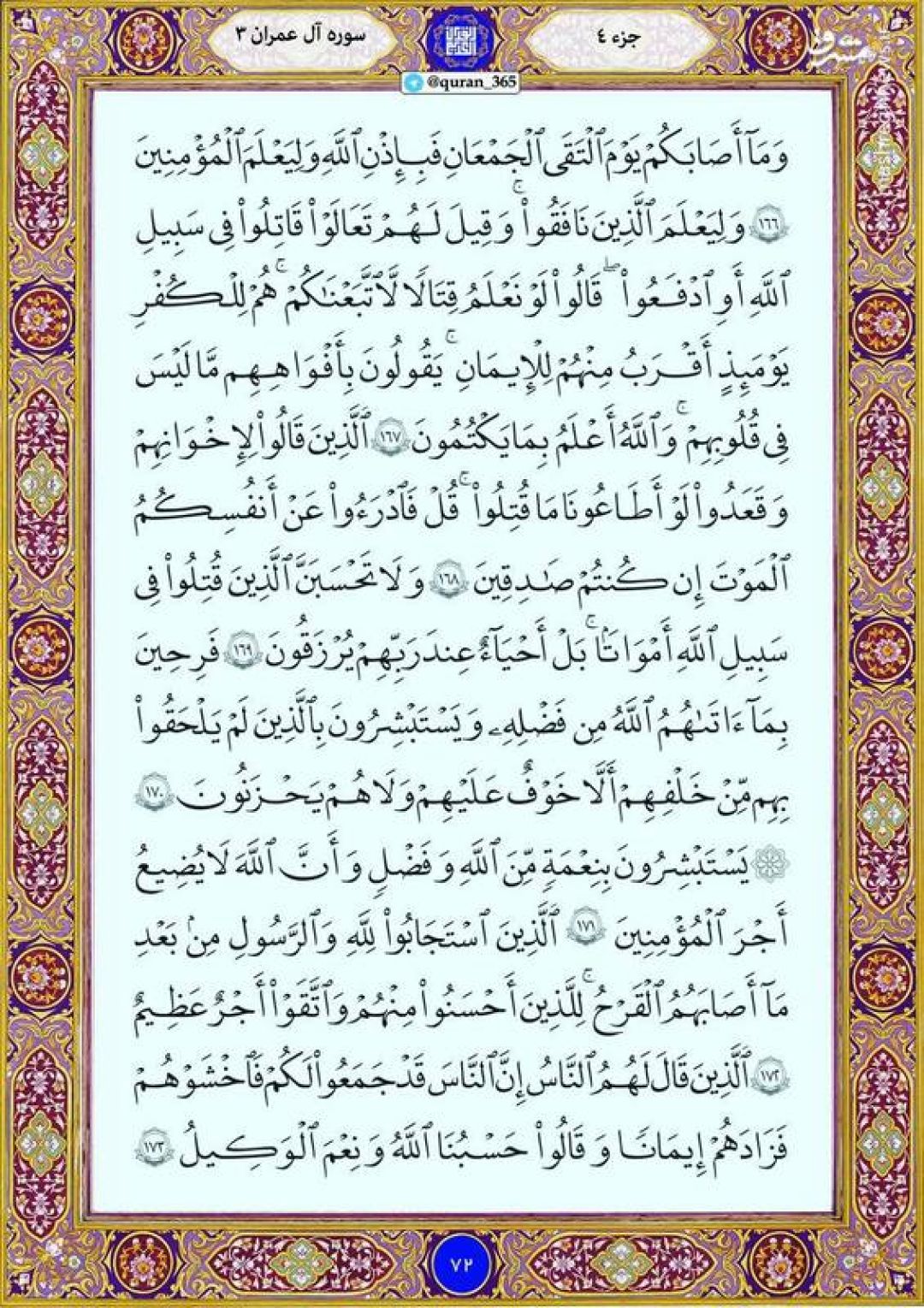 چهارشنبه را با صفحه ۷۲ قرآن آغاز میکنیم